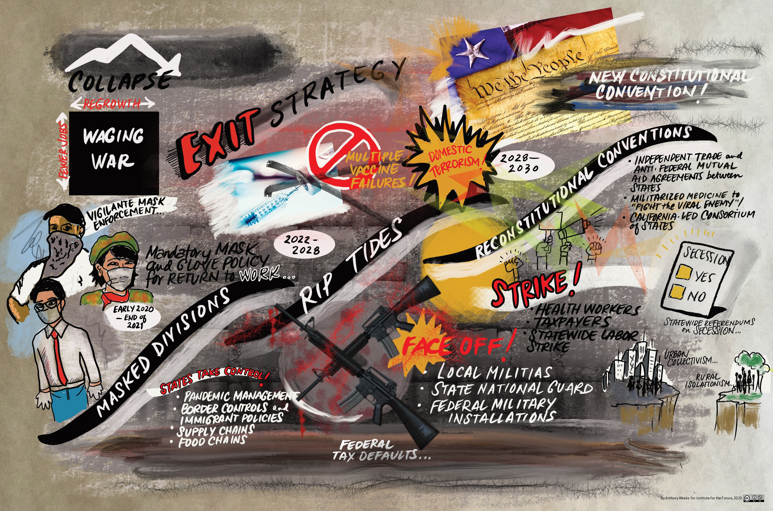 Here’s a preview of the basic steps and some sketches of four alternative futures that the Institute for the Future will be using over the coming months to catalyze the insights of frontline workers, community voices, academic thought leaders, and policymakers.