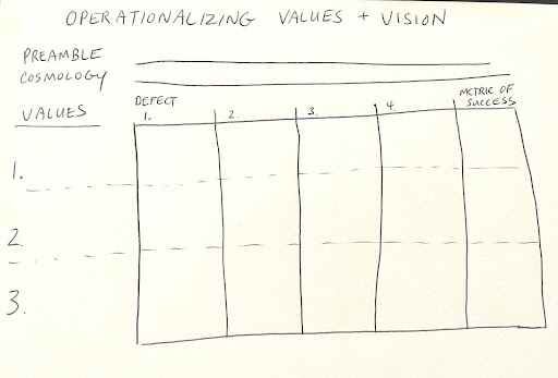 Initial sketch of the Operationalizing Values and Vision Framework. By Jake Dunagan