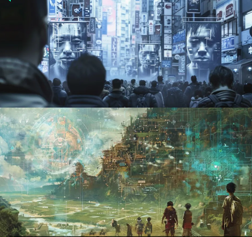 Description: In 2034, we live in an affluent society characterized by peace and love. To ensure order and safety, AI surveillance is ubiquitous. As the exploration of the outside world becomes increasingly restricted by these surveillance devices, many people turn inward, seeking to explore their inner selves.